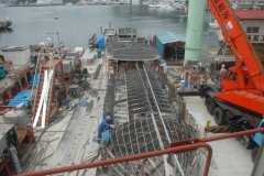 船尾・機関室ブロック組立開始
