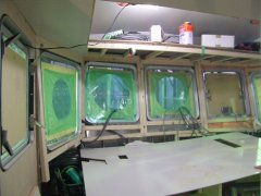 左:塗装工程に入ったので南工場に移動。 右:ブリッジ内装工事