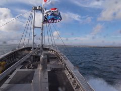 左:バルバスの無い船が精いっぱい主張しています。 右:試運転無事終わり花咲港に帰港中。。
