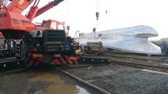 海上試運転に。 逆光でいい写真なし。 凪の関係で回航は来週に