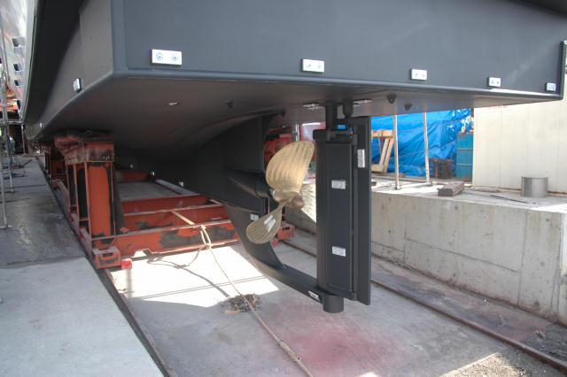 スラスターは300φ、 この手の軽い漁船は これのおかげで造船屋さんの基本設計というものが難しくなる