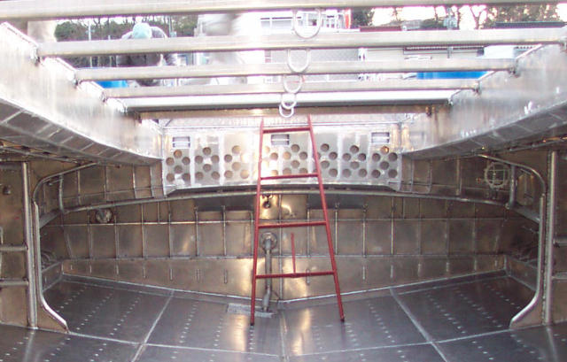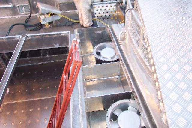 漁倉後部、 穴がいっぱい開いているのがファンの吸い口、 漁倉も空気循環し