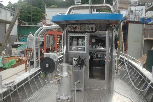 落とし窓よりブリッジ内を通し見て操船します。 ドアーはK-Yard製