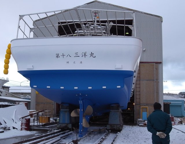花咲港での進水式を終え、 すぐに網走に回航した。