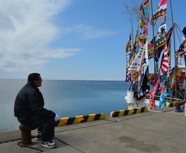 株式会社 ケーヤード 下の写真から順に上に来てください。 ![]() 船団の船頭仲間の皆さんと、 お疲れ様でした。 いろいろと指導いただき、 感謝申上げます。 K-Yardは新参者なのに、 本当におかげ様でした。 ![]() またもやベストショットや。 "空飛ぶ鏡餅" これって、 爺婆の頭に当たったら大変だべさねエ。 このショットは撮ろうとして撮りました。 フロックでない。 ![]() 餅まきの賑いの中、 ポッと、 小沼船主は遠まきから眺めようと・・ 一連の35吉進丸建造写真の中でベストショットです。 小沼さんお疲れ様でした。 次はお互い子供たちの代。 末永くご指導ください。 いい仕事させていただきました。 こういうの私、 見逃さないのです。 船主に気づかれずにそっと 後から回って・・ かっこいいと思う、 哀愁漂います。 疲れたべ。 新造船は一大事業ですもの。 本当にお疲れ様です、 もう少しです。 ![]() ブリッジ上の餅まきの若い衆は投げるのが下手なようで・・ この光景は造船の慣習ですから。 いいね・・ 祝い・威勢・賑い、 歓声、 祝福される瞬間。 穏やかで心豊かな日本人、 心から和む。 それにしてもものすごい人の数、小沼さんの人柄なんでしょ。200人? ![]() 鏡開き。 なんだかね。 木の味のする酒・・ いいね・・ 樽味 旨。 家らの社員も少しだけ? 集団間接Kiss。 皆同じ病気ですから。 根室の地酒"北の勝"ですね。 1週間に1晩は飲みたい酒です。 酒蔵のお母さん社長様には、節目には必ず「頑張ってますね。」 って励まして頂いています。 男前(男役)な感じで凛とした感じの 社長様です。 こんなとこで、 思いだしたようにの感謝は止せ。 ![]() 2016/04/27 AM11:40 最高の日。空気でそう感じる。 綺麗な衣裳着せてもらった 家の娘。 小さい船だから、 なおさらかわいく見える。 ![]() 2016/04/27 AM11:40 午後からお披露目・鏡開き・餅まきがあります。 天気が良くてね。 おめでたい画像ですね。 それにしても、この満艦、 すごい旗の数 大型中部サンマ船より揚げてんじゃない? ![]() 2016/04/26 PM3:40 根室港で満艦にして、直ぐに温根沼に回航。 お披露目走行。 旗立てても速い船ってあんまり無いな。 よろめかないし。 時化に強そう、 沿岸船にしてはオーバークオリティーかな? ![]() 湾内は徐航なんですけど、 速っ。 減速比が大きく船速出ない 予定でしたけど。気に行って頂ける速力が出てよかった。 FO-3KL搭載。 旗を下げ、 FO-1KLなら楽に24ノット船です。 この船は沿岸漁船ですので、 前方の視界性が重視されるので 船尾スタンに固定フックがあります。 ゆえ、 K-Yard船では不本意な 走行トリムは少ない船です。 サイド波が出てますがバルバス の流氷防御の半丸棒とバルジで発生していますが、 省抵抗だ から船尾を上げつつ船速は出ています、 滑走する寸前かも。 なんかこの娘、 清楚感あるな、 家の姉さま達とは、 ちょっと・・ ![]() 2016/04/26 AM8:40 進水式執り行い、進水です。バケツで潮をかけてあげるのを 忘れて、 30分、 娘(船)にごねられましたが、 進水します。 ![]() 2016/04/25 PM6:00 全員帰してから、船主さんの息子さんと2人で 命名式と御霊入れ式を執り行いました。船名旗を眺め「この船の名は 第三十五 吉進丸とす。」とか言ってから、この謎めいた儀式。 本気に、 きっちり2人で神経集中し、 お願いできたと思います。 お願いの儀式を執り行ってから、 夜中に私一人で御霊を入れさせて 頂きました。 「キエ〜〜・・・」 あくまで素人(インチキではない)祈祷師ですから。 |