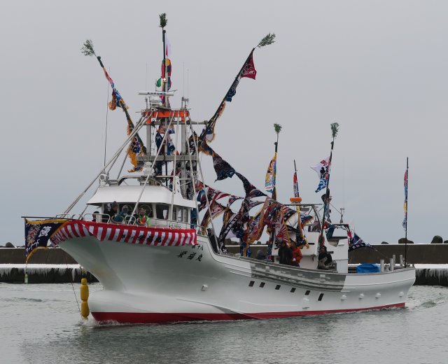 株式会社 ケーヤード 下の写真まで下げてから御覧下さい。 ![]() 2018/11/26 次の日に上架しました 栄福丸が飛び出てる。 50pほどは長くなった だけなのに、 船台の位置の関係? ![]() 2018/11/25 おめでとうございます。 乗組員様集合写真です。 お疲れさまでした。 感謝申し上げます。ありがとうございます。 ![]() 2018/11/25 おめでとうございます。 家族写真です。 お疲れさまでした。 男衆は建造中、 何回も足を運ばれ家族の 皆様には何かとご不自由をおかけしました。 ありがとうございます。感謝申し上げます。 ![]() 2018/11/25 知来別港にお目見え 船主さん。 ホッとしてるのかな、 お疲れ なのにいい顔しています。 若さ・・・・ 私の顔は・・ ルームミラーでみたらカジカ みたいでした。 ほっといてください。 ここまで来た船主様方の餅撒き後のお顔。 どの船主様もいいショットが取れています。 このために、 仕事さてて頂いてるから。 ![]() 2018/11/25 知来別港にお目見え やっとここまで・・・ 風雪じゃなくてよかった。 すごい餅の量です。 よかったア ![]() 2018/11/25 知来別港にお目見え 遠目で見てたけど、 ビビるような船頭じゃ ないしな、 一升瓶割れたのかな?。 ![]() 2018/11/25 知来別港にお目見え メンコイもんだ、 健気な娘みたい。 おめでとうございます。 生まれてきて くれてありがとう。 何言ってんだか。 ![]() 2018/11/25 小一時間で旗立完成 すぐに知来別港にむけて・・・ 組合バックに。 私は陸からのカメラマンします。 ![]() 2018/11/25 浜鬼士別港に着きました PM12:00 お疲れ様、 うれしい、 お蔭さまでした。 ![]() 2018/11/25 回航中 斜内の神威岬が見えた。 なんかここ見てもHOME を感じる私?、 何とか浜鬼までこの調子で行け〜・・・ ![]() 2018/11/25 回航中 朝日見つめ、、 かっこいいと思います。 ![]() 2018/11/25 回航中 常呂の沖辺り。 どこも操業はしてなかった。 ![]() 2018/11/25 2時間程度吹かれました。 能取岬直行は無理、 諦めて斜里のほうに 向けて様子を見ることに、 予想的中 中に入ればいい凪になりました。 ![]() 2018/11/25 知床岬かわしました 嫌な予感が 怖い怖い岬かわしたまではよかった。 だんだん 風と波が出てきたし、 甘くはないな冬海は。 ![]() 2018/11/24 花咲港から猿払港に向けて出航しました ブルーのポリラインはボーダーです。 現時点の 位置ははみ出なくてもよくナングセつけら れるとこなそうです。 拿捕されないようにとか・・ なっななナ何で? 私、 気仙沼っ子なのに、 堅気 なのに、 何でこんな所でこんなこと言ってるの? 拿捕? 考えたくもない。 空、、 恐ろしい話です。 ![]() 2018/11/24 花咲港から猿払港に向けて出航しました ずっと1800rpmで航行します。 おっつ、 ちょっと いつもと違う模様の航跡ですな。 フムフム。 ![]() 2018/11/24 花咲港から猿払港に向けて出航しました PM07:40 気持ち悪いほど沖は静か。 船主中山さんも 乗るから、 私も乗船しています。 ずっと 凪ならいいな、 腹減ったな、 ペコペコ。 いつもの根室の70代の回航員2人元気だし。 まずは出たし、 任務遂行しましょう。 ![]() 2018/11/19 予行運転 PM01:30 花咲港沖試運転4/4出力動画 K-Yardの工務さん。 予行運転データー 取りはもう私の最後の仕事。 明日のJCI の公試運転は当然立ち合いません。 盛合を頭に工務陣は今回の船は真の仕事 を思い知ったと思うし、 ぎりぎり耐えた? こんな機会も与えてくれた船主様には 私は深い深い感謝の思いでいっぱいです。 ![]() 2018/11/19 予行運転 PM01:30 沖まで向かい風、 横風航行で 22kt近く。 PC制御だから回転 おまけ無し、 負荷をかけないと パワー出ないのがこのEngineの売。 この船の売りは省抵抗船だから・・ ![]() 2018/11/19 予行運転 PM01:30 花咲港沖試運転時3/4出力動画 結構風ありました。 何か静かで エレガント。 燃料4KL満タンで 安全第一も重そうですが、 船体 もエンジンも軽々で少しホッと。 ![]() 2018/11/18 進水式 AM09:30 浮いた。 船尾シーヤ気にならないし。 シャンとして、 赤の船底がガワイイ ![]() 2018/11/18 進水式 AM08:30 ナオライノギ 神主さんの掛け声で乾杯 ![]() 2017/07/06 2018/11/18 進水式 AM08:30 玉串奉奠 K-Yard従業員 一同 この人は一入だろう。 ![]() 2018/11/18 進水式 AM08:30 玉串奉奠 船主御子息 中山 様 ![]() 2018/11/18 進水式 AM08:30 玉串奉奠 乗組員 中山 様 ![]() 2018/11/18 進水式 AM08:30 玉串奉奠 乗組員 中山 智様 ![]() 2018/11/18 進水式 AM08:30 玉串奉奠 船主の中山様 ![]() 2018/11/18 進水式 AM08:30 優しい祝詞奏上です。 根室の金毘羅様 ![]() 2018/11/18 進水式 AM08:30 これより第十八 栄福丸の進水式を 執り行いします。栄福丸ファミリー 船頭と同級生の大渕船頭も駆けつけて。 |