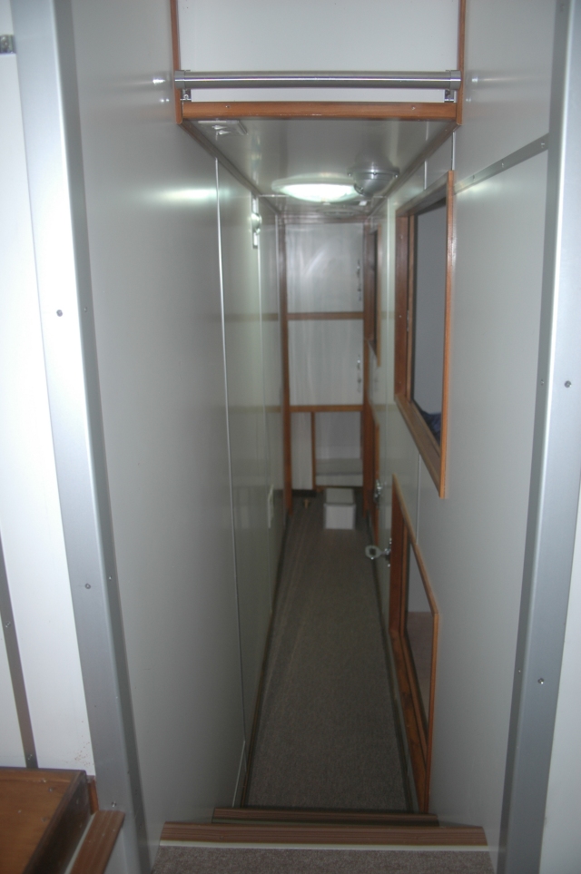 左舷4人ベットルーム、 奥が船首、 通路幅は460mm。