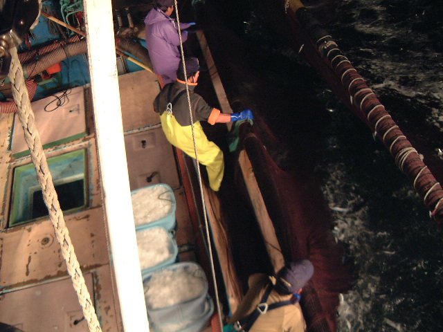 012:中央での網上げ、 ここに網を寄せて フィッシュポンプで吸上げる