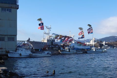 吉田造船の旗も揚がっています。 造船所が造船所に。 何でもありの