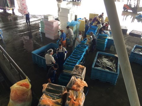 PM1:30頃には全船入港した。 荷揚げはPM2:30とか。