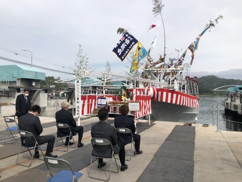 これから凄い寒いし風強いし、 進水式執り行いました。