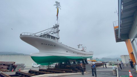2021-01-18 70m級 まき網積船 進水(式ではない) (気仙沼居る)