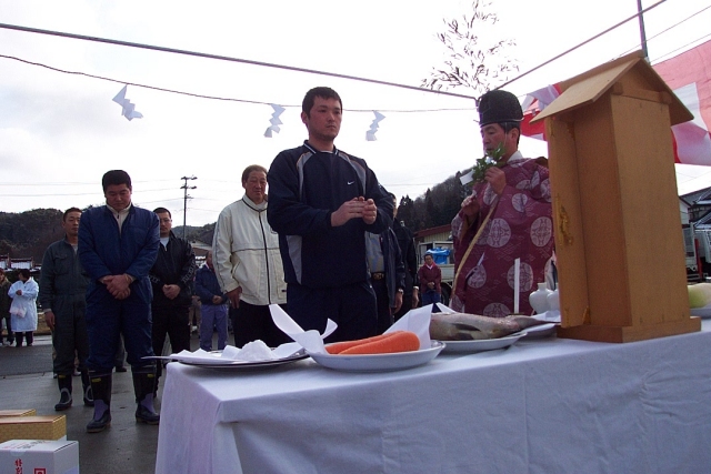 25日AM9:00から 2隻合同で進水式を執り行いました。 ヤンマー稚内2人、佐藤電機、