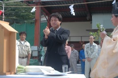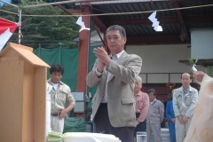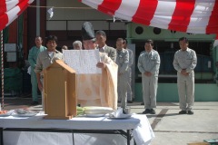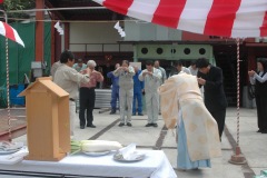 進水式当日、 垂れ幕の下綱に鉛が・・・ 高級