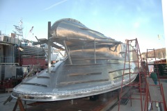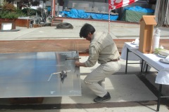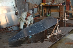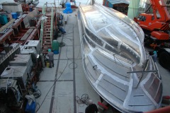 甲板のFRP敷板あわせやっています、 25日に進水。