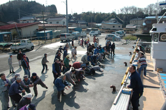 第三金龍丸の乗組員 4名 「船頭・・ 口に何かはいってんのすか?」