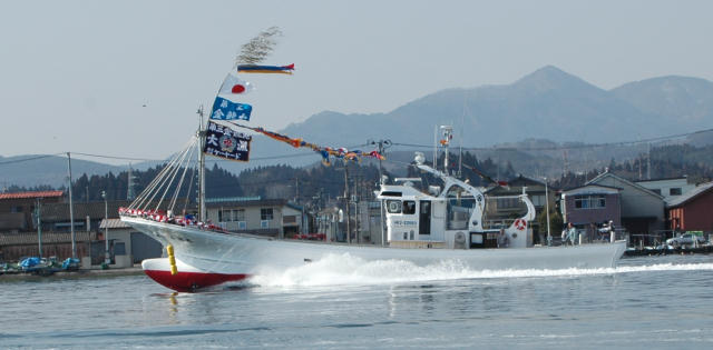AM11:00気仙沼を出航、 娘の父はこの時が一番寂しい。