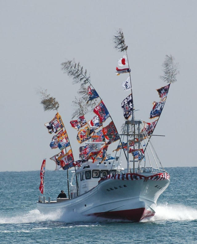 進水式後の試運転です、 湾内のお宮さんで3回って拝んで参りました。