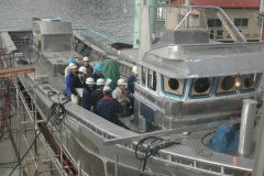 船尾・機関室ブロック組立開始