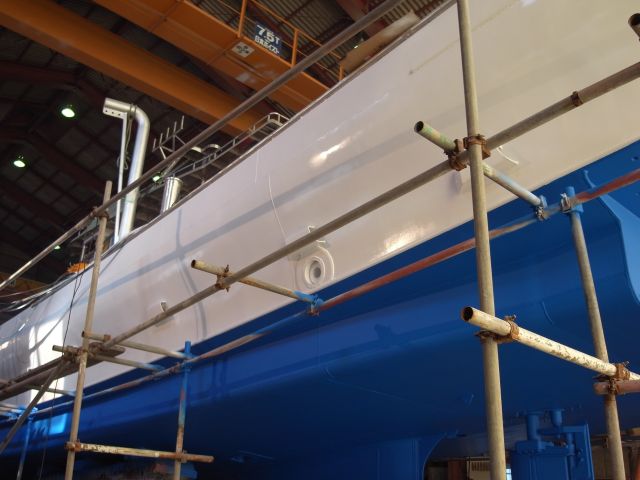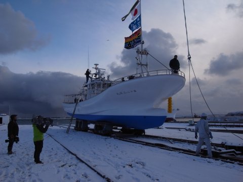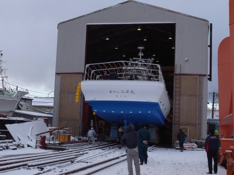 状態進行:ブリッジ内装・甲板敷板・甲板艤装→進水式(12月7日)→回航(12月7日)