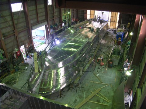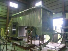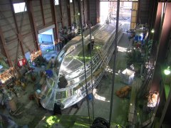 左:塗装工程に入ったので南工場に移動。 右:ブリッジ内装工事