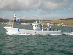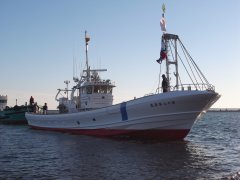 左:バルバスの無い船が精いっぱい主張しています。 右:試運転無事終わり花咲港に帰港中。。