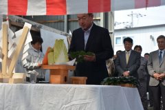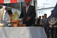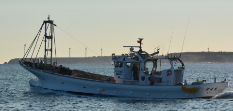 海上試運転に。 逆光でいい写真なし。 凪の関係で回航は来週に