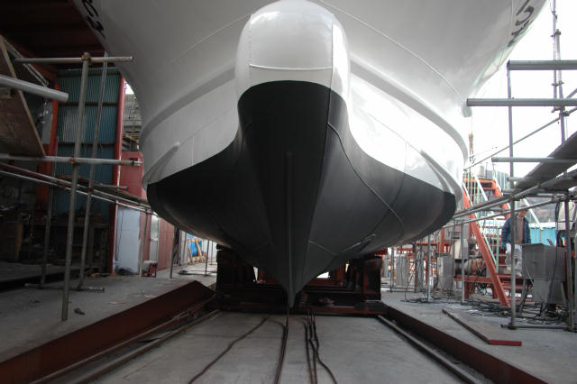 チャイン部まで丸みが・・・ 波の分け方・流れが・・ 大幅な抵抗減。