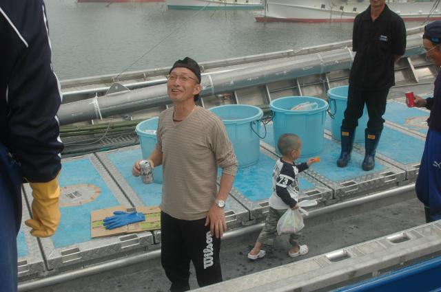 中央は第38の船頭、 右の横顔が第8の船頭、 子供は・・? 孫とか言ってたし?