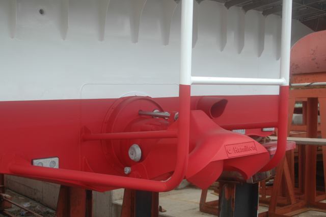 船である限り、 この反力を船にするのは造船屋の仕事、ただの推力じゃないけど推力に変わりない。