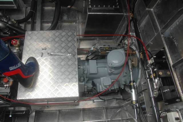 船尾取舵側のケタクリ。 油圧モーターからチェーンをかいして減速される。