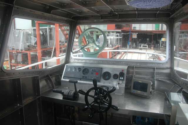 落とし窓よりブリッジ内を通し見て操船します。 ドアーはK-Yard製