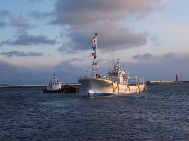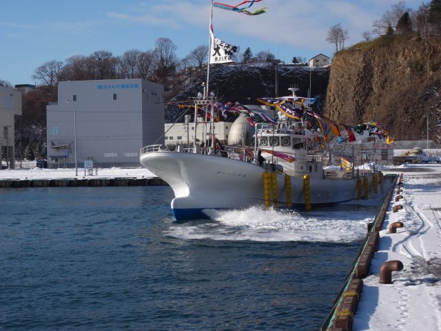 花咲港での進水式を終え、 すぐに網走に回航した。