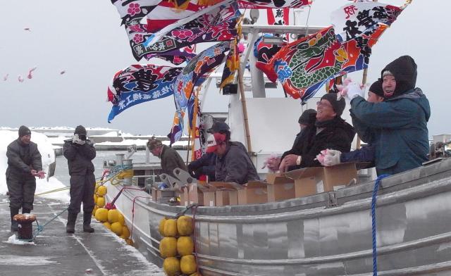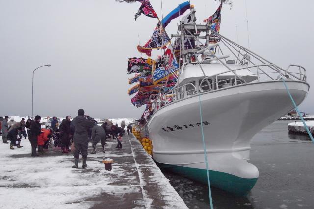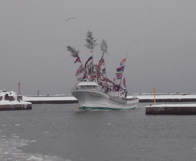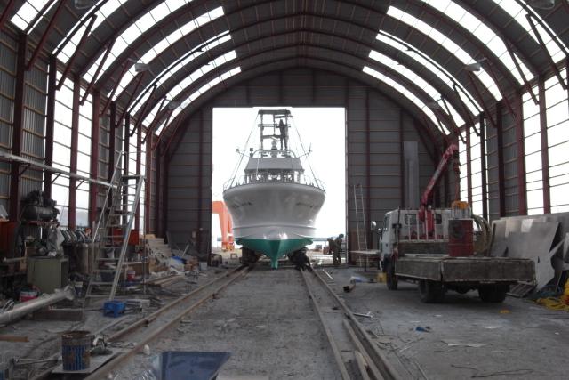 株式会社 ケーヤード 下の写真から順に上に来てください。 ![]() はあ・・ 船主さんお疲れ様。 餅まき、 いい表情で。 いろいろ心配かけました。 3月に少しの調整箇所もございましょうが、 引渡しさせて頂き本当に ありがとうございました。 猿払はもう世代交代。 アルミ漁船二周りめの アルミ漁船先進の地。 20年経てば当然なんだな。 親たちは交代はまだだと 言ってピンときていませんが、 後継ぎたちはもう一人前。 邪魔な存在になりつつ。 ![]() 餅まき。 始まりました。 朝飯抜きだったので4つ食べた。 柔らかくて旨かったです。 朝つきなんですね。 以前は石のように硬かった(凍ってた?)ような記憶が。 ![]() 12/11 AM11:00 母港の知来別に入港。 "お目見え〜" 花魁コスプレや。 ![]() 船(娘)造りはいつも、 男ですけど産みの苦しみですね。 どこの造船所も一緒。 すんなりはほとんどない。 吉田造船が化粧旗くれました。 嬉しいですね。 何か。 社長は2ヶ月遅れで1学年後輩ですが"頼もしいお人です"。 自分は既に完璧に後輩扱い。 ![]() 12/11AM7:00 浜鬼港に入港。 寒い・風強い。 何でも順調だったから回航の おじさんらも私も元気は元気でしたけど、 寒い。 やっとここまで来た・・・ ![]() 直ぐに南工場まで上げちゃいます。 中に入れて測度受けて、 残工 し、 また猿払まで回航がある。 この建屋が無かったら仕事にならなかった。 ![]() 11/29 昨日夕方、 やっと気仙沼から花咲港に着いた。 二安心や。 何かこの回航、 いつになくメッチャ心配した。 凪をつかみ難い年だ。 ![]() 第六十三 幸漁丸。 写真何で出したって? 実は、 第六十三 海豊丸の号数は 船主さんが「何にスッペッ」 言うから58の次は63だし、 様似の通称"ロクサン幸漁" この船は被災後の吉田造船できの新船ですが、 被災前から常に漁がトップの船なんです。 大吉数だし、 響きもいい。 幸漁丸ってあまり言わず、 ロクサンで通り渡ってます。 以上、 吉田造船の宣伝でした。 速力もトップ、 家の小型サンマ船の性能での目標船。 ![]() 根室で内装するからこんな状態です。 何ですかこのヘッピリ。 1人でストップウォッチぶら下げて旋回・停止・惰性・360度全て 自分勝手にいつもやってる。 この人は岸壁付け以外は回すのは OKの人で、 昔、 トライして岸壁にぶつけてトラウマになってる。 ![]() 1900rpmで360度旋回テスト。 半径2艇身。 のんびり立っています。 ![]() 湾の奥行きの中ごろ地点。 そろそろ全速で湾の外まで行ってデーター取り。 ![]() 湾内は徐航なんですけど、 以前は全速はお約束で平気でしたけど ブランクがあるから試運転旗上げてても遠慮しちゃいました。 ![]() 気仙沼港ですね・・ 山は安波山。 晩秋? 冬でしょ。 毎日この風景 見てたんだしな。 艤装バージまでチャッカーで引張ります。 ![]() 2014/11/13 進水です。 山とか海の色とか、 気仙沼なんだな。他所の造船所 って言っても親戚みたいなとこだし、 気兼ねは少ししましたけど。 仲間が 造ってるので船がきれいは当然ですし、 天気いいし、 だめだ、 泣き虫ですから。 |