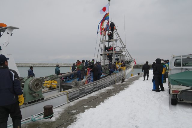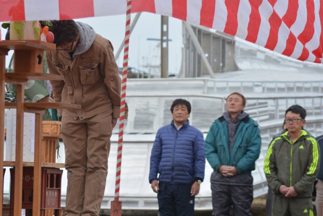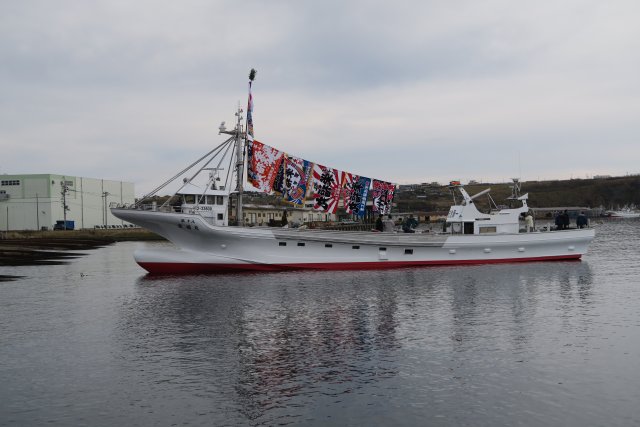 株式会社 ケーヤード 下の写真まで下げてから御覧下さい。 ![]() 2018/11/26 次の日に上架しました 栄福丸が飛び出てる。 50pほどは長くなった だけなのに、 船台の位置の関係? ![]() 2018/11/25 おめでとうございます。 乗組員様集合写真です。 お疲れさまでした。 感謝申し上げます。ありがとうございます。 ![]() 2018/11/25 おめでとうございます。 家族写真です。 お疲れさまでした。 男衆は建造中、 何回も足を運ばれ家族の 皆様には何かとご不自由をおかけしました。 ありがとうございます。感謝申し上げます。 ![]() 2018/11/25 知来別港にお目見え 船主さん。 ホッとしてるのかな、 お疲れ なのにいい顔しています。 若さ・・・・ 私の顔は・・ ルームミラーでみたらカジカ みたいでした。 ほっといてください。 ここまで来た船主様方の餅撒き後のお顔。 どの船主様もいいショットが取れています。 このために、 仕事さてて頂いてるから。 ![]() 2018/11/25 知来別港にお目見え やっとここまで・・・ 風雪じゃなくてよかった。 すごい餅の量です。 よかったア ![]() 2018/11/25 知来別港にお目見え 遠目で見てたけど、 ビビるような船頭じゃ ないしな、 一升瓶割れたのかな?。 ![]() 2018/11/25 知来別港にお目見え メンコイもんだ、 健気な娘みたい。 おめでとうございます。 生まれてきて くれてありがとう。 何言ってんだか。 ![]() 2018/11/25 小一時間で旗立完成 すぐに知来別港にむけて・・・ 組合バックに。 私は陸からのカメラマンします。 ![]() 2018/11/25 浜鬼士別港に着きました PM12:00 お疲れ様、 うれしい、 お蔭さまでした。 ![]() 2018/11/25 回航中 斜内の神威岬が見えた。 なんかここ見てもHOME を感じる私?、 何とか浜鬼までこの調子で行け〜・・・ ![]() 2018/11/25 回航中 朝日見つめ、、 かっこいいと思います。 ![]() 2018/11/25 回航中 常呂の沖辺り。 どこも操業はしてなかった。 ![]() 2018/11/25 2時間程度吹かれました。 能取岬直行は無理、 諦めて斜里のほうに 向けて様子を見ることに、 予想的中 中に入ればいい凪になりました。 ![]() 2018/11/25 知床岬かわしました 嫌な予感が 怖い怖い岬かわしたまではよかった。 だんだん 風と波が出てきたし、 甘くはないな冬海は。 ![]() 2018/11/24 花咲港から猿払港に向けて出航しました ブルーのポリラインはボーダーです。 現時点の 位置ははみ出なくてもよくナングセつけら れるとこなそうです。 拿捕されないようにとか・・ なっななナ何で? 私、 気仙沼っ子なのに、 堅気 なのに、 何でこんな所でこんなこと言ってるの? 拿捕? 考えたくもない。 空、、 恐ろしい話です。 ![]() 2018/11/24 花咲港から猿払港に向けて出航しました ずっと1800rpmで航行します。 おっつ、 ちょっと いつもと違う模様の航跡ですな。 フムフム。 ![]() 2018/11/24 花咲港から猿払港に向けて出航しました PM07:40 気持ち悪いほど沖は静か。 船主中山さんも 乗るから、 私も乗船しています。 ずっと 凪ならいいな、 腹減ったな、 ペコペコ。 いつもの根室の70代の回航員2人元気だし。 まずは出たし、 任務遂行しましょう。 ![]() 2018/11/19 予行運転 PM01:30 花咲港沖試運転4/4出力動画 K-Yardの工務さん。 予行運転データー 取りはもう私の最後の仕事。 明日のJCI の公試運転は当然立ち合いません。 盛合を頭に工務陣は今回の船は真の仕事 を思い知ったと思うし、 ぎりぎり耐えた? こんな機会も与えてくれた船主様には 私は深い深い感謝の思いでいっぱいです。 ![]() 2018/11/19 予行運転 PM01:30 沖まで向かい風、 横風航行で 22kt近く。 PC制御だから回転 おまけ無し、 負荷をかけないと パワー出ないのがこのEngineの売。 この船の売りは省抵抗船だから・・ ![]() 2018/11/19 予行運転 PM01:30 花咲港沖試運転時3/4出力動画 結構風ありました。 何か静かで エレガント。 燃料4KL満タンで 安全第一も重そうですが、 船体 もエンジンも軽々で少しホッと。 ![]() 2018/11/18 進水式 AM09:30 浮いた。 船尾シーヤ気にならないし。 シャンとして、 赤の船底がガワイイ ![]() 2018/11/18 進水式 AM08:30 ナオライノギ 神主さんの掛け声で乾杯 ![]() 2017/07/06 2018/11/18 進水式 AM08:30 玉串奉奠 K-Yard従業員 一同 この人は一入だろう。 ![]() 2018/11/18 進水式 AM08:30 玉串奉奠 船主御子息 中山 様 ![]() 2018/11/18 進水式 AM08:30 玉串奉奠 乗組員 中山 様 ![]() 2018/11/18 進水式 AM08:30 玉串奉奠 乗組員 中山 智様 ![]() 2018/11/18 進水式 AM08:30 玉串奉奠 船主の中山様 ![]() 2018/11/18 進水式 AM08:30 優しい祝詞奏上です。 根室の金毘羅様 ![]() 2018/11/18 進水式 AM08:30 これより第十八 栄福丸の進水式を 執り行いします。栄福丸ファミリー 船頭と同級生の大渕船頭も駆けつけて。 |