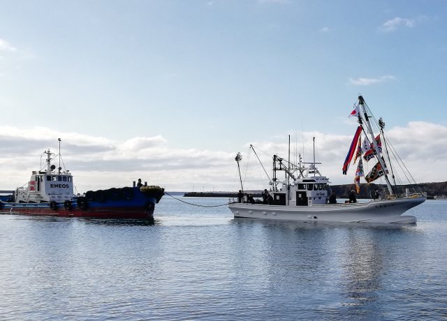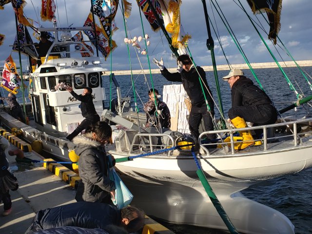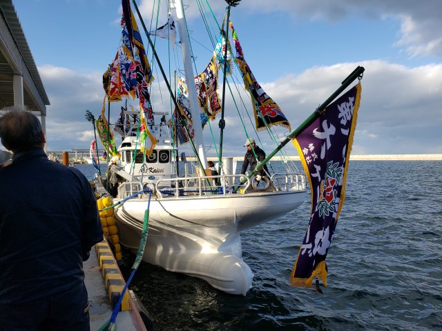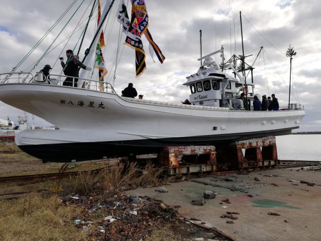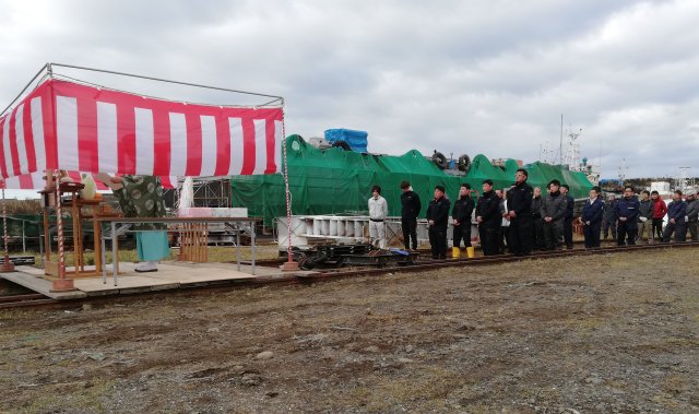 株式会社 ケーヤード 下の写真まで下げてから御覧下さい。 ![]() 2019/11/10 乗組員様ファミリー集合 北海工機・ケーヤード、 末永くよろしくお願いします。 すべては縁なんです。 この縁を頂き感謝申し上げます。 ![]() 2019/11/10 餅まき 豪快にまいてます。 本当にいい習わしですね。 天気に恵まれました、 家の若い衆もこの日が あるから頑張れる。 私もここに居たかった。 ![]() 2019/11/10 餅まき この数・・・ うれしいなア、 いいことだけ 思えばこの瞬間に出合うという絵。 ![]() 2019/11/10 すごい祝いの数 ”みらい造船”でやる大型漁船より勝ってます。 ![]() 2019/11/10 尾岱沼に無事到着 北海工機、 ケーヤード社員も来てる。 乗っていった社員も。 一先ずホッと。 ![]() 2019/11/10 試運転→回航 2019/11/10 回航 尾岱沼に回航時01動画 2019/11/10 回航 尾岱沼に回航時02動画 若人はいいね、 どんな場合でも絵になる 動画撮るのうまい人居るのは知ってました。 ![]() 2019/11/10 試運転 花咲港沖での試運転に向かってます。 ![]() 2019/11/10 進水した 重いな、 塗分け線上げと、 トリム調整 必要。 まあいいか無いな5t船、 難い。 ![]() 2019/11/10 進水します ”潮かけ”とか”お神酒”・”お護摩のお灰さん” 船体にかけてやったのかな。 あっ、 心配は やめたんだ。 社員の気持ちは十分入ってます。 ![]() 2019/11/10 進水式 進水式祝詞奏上 船主さん、 北海工機さん、 おかげさまです。 ![]() 2019/11/09 進水前 明日、進水式・試運転・回航。 初めての私 不在の進水。 精一杯造船で生きるため 全員で頑張る気持ちには変わりありません。 |