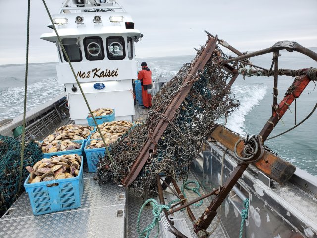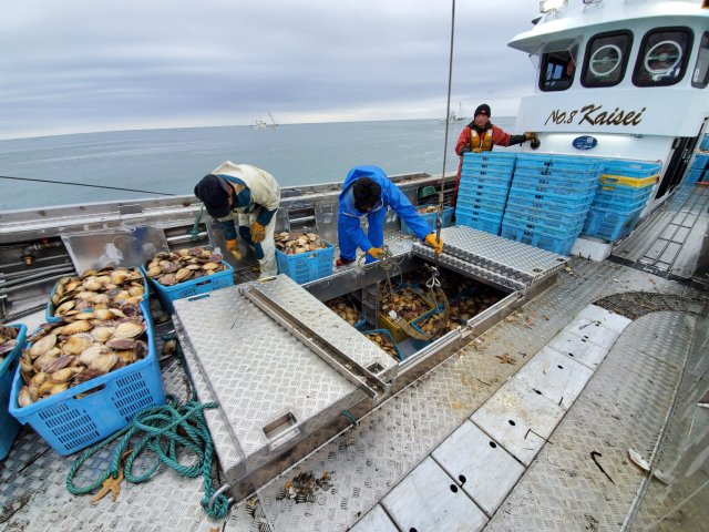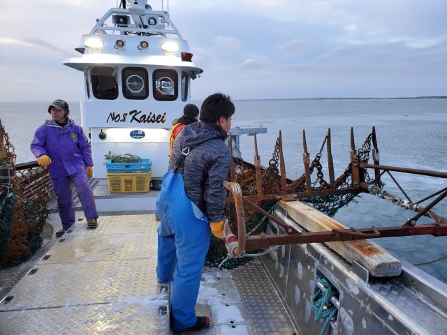 株式会社 ケーヤード 下の写真まで下げてから御覧下さい。 ![]() 2020/1/08 初操業 5トン船団集まって、 今期も頑張ろうの声かけ合い かな。 このあとホタテ頂いてきて食べたそうです。 家の若い衆はなんぼ一入だったべな〜 わかる。 ![]() 2020/1/08 初操業 初入港。 お疲れ様でした。 浩人の写真に勝手にコメント入れて・・・・ 写真と動画見る限り、 どしっといい船ですね。 喜んで頂いてるようで、 家の若い衆・・ なんぼ うれしいべな。 自分の昔の映像と重なってる。 ![]() 2020/1/08 初操業 船首甲板上にはこのくらい。 全部で78籠 の漁。 まずまずなのかな。 午前10時半帰港 操業(帰港)動画 ![]() 2020/1/08 初操業 船尾にはこのくらい積んでます。 極寒日だと ホタテ貝が凍っちゃうから保温シートで包むか 、 漁倉だけに入れるかとか、 冬漁ですから。 ![]() 2020/1/08 初操業 漁倉にこのくらいカゴに入れて積み込みます ![]() 2020/1/08 初操業 ボンブ(ブーム)は振れない(固定)ので八尺 を押してます。 船傾かないから重そうに感じます ![]() 2020/1/08 初操業 第1回目まくって、2回目を投入するとこですが 1回目の量すごいな14tといっしょっぽいですね・・ 操業(初八尺投入)動画 操業(選別作業)動画 操業(2回目投入)動画 ![]() 2020/1/08 初操業 海もアルミ色。 ベタ凪で・・ ![]() 2020/1/08 初操業 尾岱沼の海らしい。 薄氷とホタテ操業。 いい写真です。 気を入れればシャッターチャンス 恵まれます。 浩人も寒いけどいい経験させて いただいたなって思う。 みんな優し人たちだし ![]() 2020/1/08 初操業 さア、 ファイトで一発目お願いします。 ![]() 2020/1/08 初操業 船頭のコックピット。 狭いブリッジもいいな。 船頭。 いいイメージだけで仕事してください。 家の若い衆の魂が染み付いた船ですから。 操業(漁場に向かう)動画 ![]() 2020/1/08 初操業 いよいよ尾岱沼5トン船団出漁・・・ 薄氷張って寒そう。 溶かす勢いで頑張って。 ![]() 2020/1/08 初操業 第八 海星丸 初操業です。 浩人、一人で乗船・ 撮影することに。 自分の選んだ仕事だからね。 出漁寸前。 新造だし、 船方の気合いはピーク? |