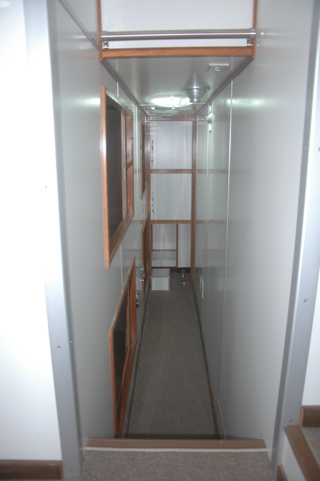 左舷4人ベットルーム、 奥が船首、 通路幅は460mm。
