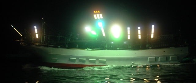 左舷の光・・・ 左舷へサンマをまわす時に?、 赤灯の光とか色?、 心配だったが