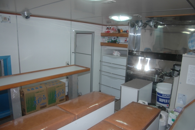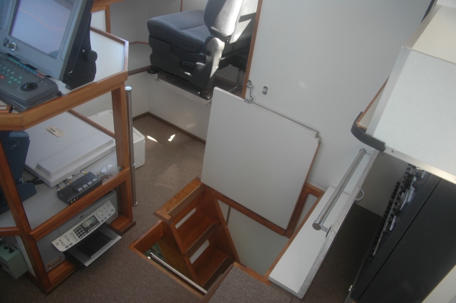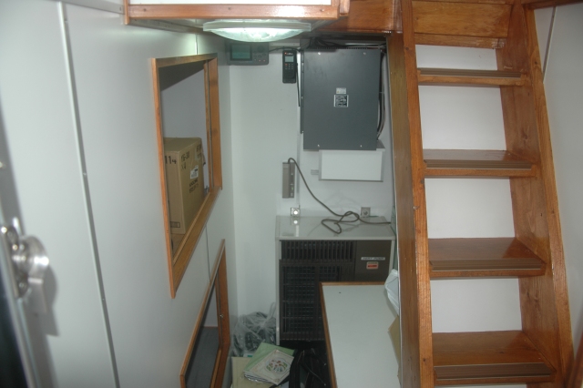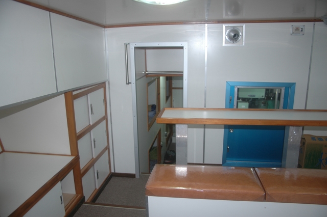 甲板長室 下がベットルームで上が物置(私が乗船したときの寝床)。 階段を上り操舵室へ、