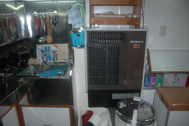 流しに、 水冷ヒートポンプ式エアコン(強力だし、 これもいい要素しかない)