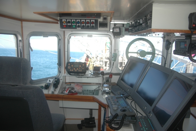 右舷(はえなわ漁側)コックピット、 はえなわ時には航海機器は反転される。