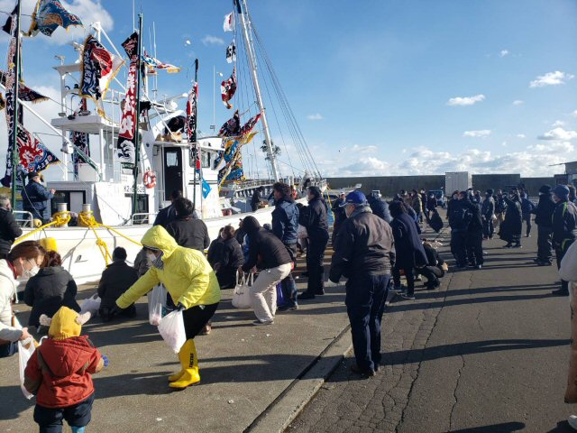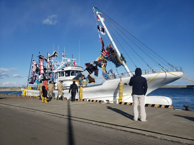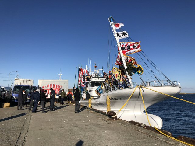 株式会社 みらい造船 下の写真まで下げてから御覧下さい。 ![]() 2021/2/13 水揚げ後係留場所での浮き姿。 入港時14トン 積載入港時の浮きより14cm平均浮きました。 兎に角、喜んでもらってよかった。 ホタテ いっぱい頂き、 とてもおいしくかったです。 ![]() 2021/2/13 船尾甲板もビッシリです。 ![]() 2021/2/13 貝デカ。 中央部には甲板と漁倉に 2段積でびっしり ![]() 2021/2/13 水揚げねらって取材に(ホタテ目当ではあり ません。) 。 14トン程のホタテ貝をとってきた そうだ。 そんなに積んでるような浮きでは なかったので、 聞きにくかったが、 予定数量 でした。 14t?、 浮きは余裕ですね。 ![]() 2020/12/24 ブリッジきれい、使いやすそうですね。 ![]() 2020/12/16 餅まき、 大勢です。 おめでとうございます 翔海丸を工場から出して餅まきまでずっと 天気が良くてよかったです。 寒かったけど。 ![]() 2020/12/15 本別海に入港しました。 ![]() 2020/12/15 大野水産外4名の代表大野船主。 お疲れ様でした。 感謝申し上げます。 ![]() 2020/12/15 キリヌサザンマイ。 大野船主とお清め。 ![]() 2020/12/15 祝詞奏上。 前傾姿勢で読み上げています。 ![]() 2020/12/15 何もかも飛びそうで、 祭壇の向きは 金毘羅山向けて拝みます。 ![]() 2020/12/15 朝一で進水式します。 風が強く・・寒い 天気は超晴。 おめでとうございます。 ![]() 2020/12/14 試運転後、 根室港に回航します。 明日は 根室港で進水式を執り行います。 試運転してます (花咲港) |