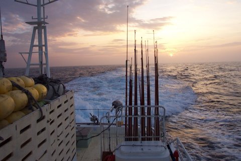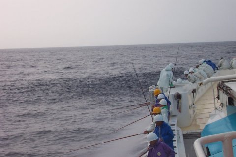 008:真東に15ノットで漁場へ、 凪良く 船酔いもせず