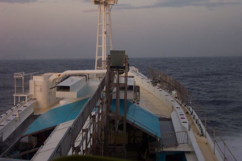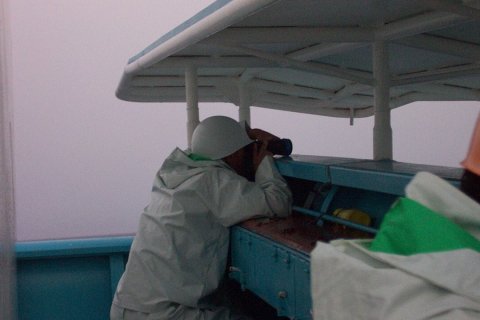 011:10日AM4:30 見張り中、ここはブリッチ上の見張り場(これでも最下段)