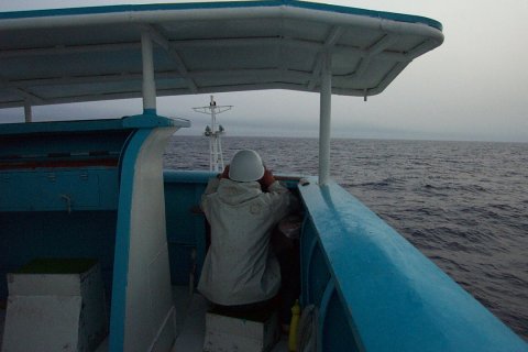 013:明神船頭です、 左舷でソナーを見つめる広瀬さん