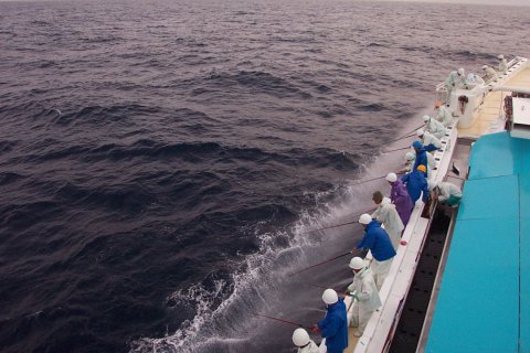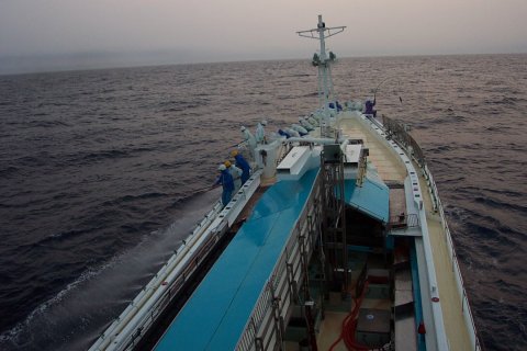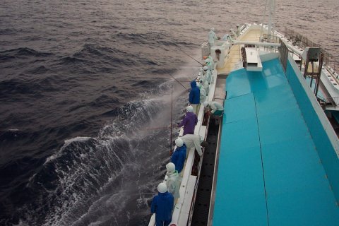 014:ナブラ発見、 船側散水シャワー出して、 準備完了 さア〜
