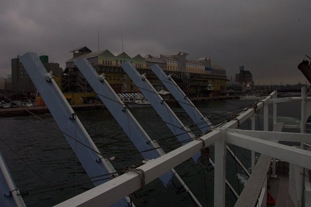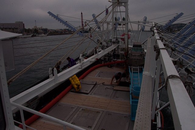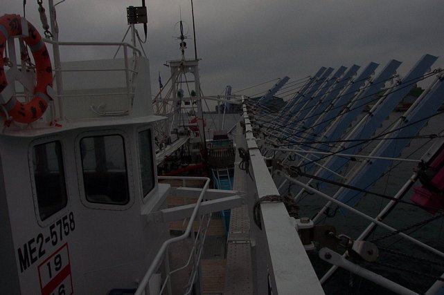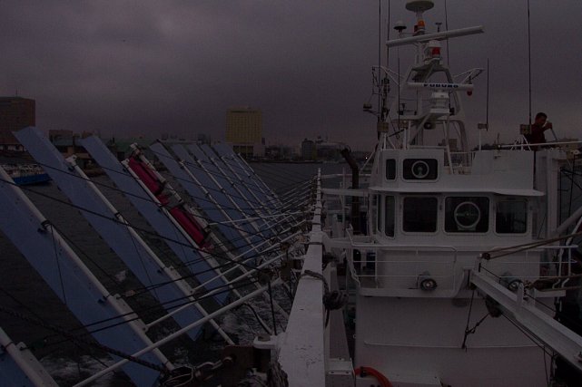 網が全部降ろされ、 向う竹があんな距離に この時点では まだ右舷にサンマが・・