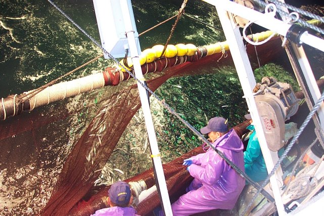 ピイ〜 〜 船頭のホイッスルで・・網を下ろします