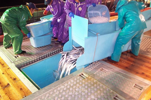 ここが海の男の踊り場・・ 磨き上げたステージ゙で丁寧に最高の魚を漁倉に仕込みます。